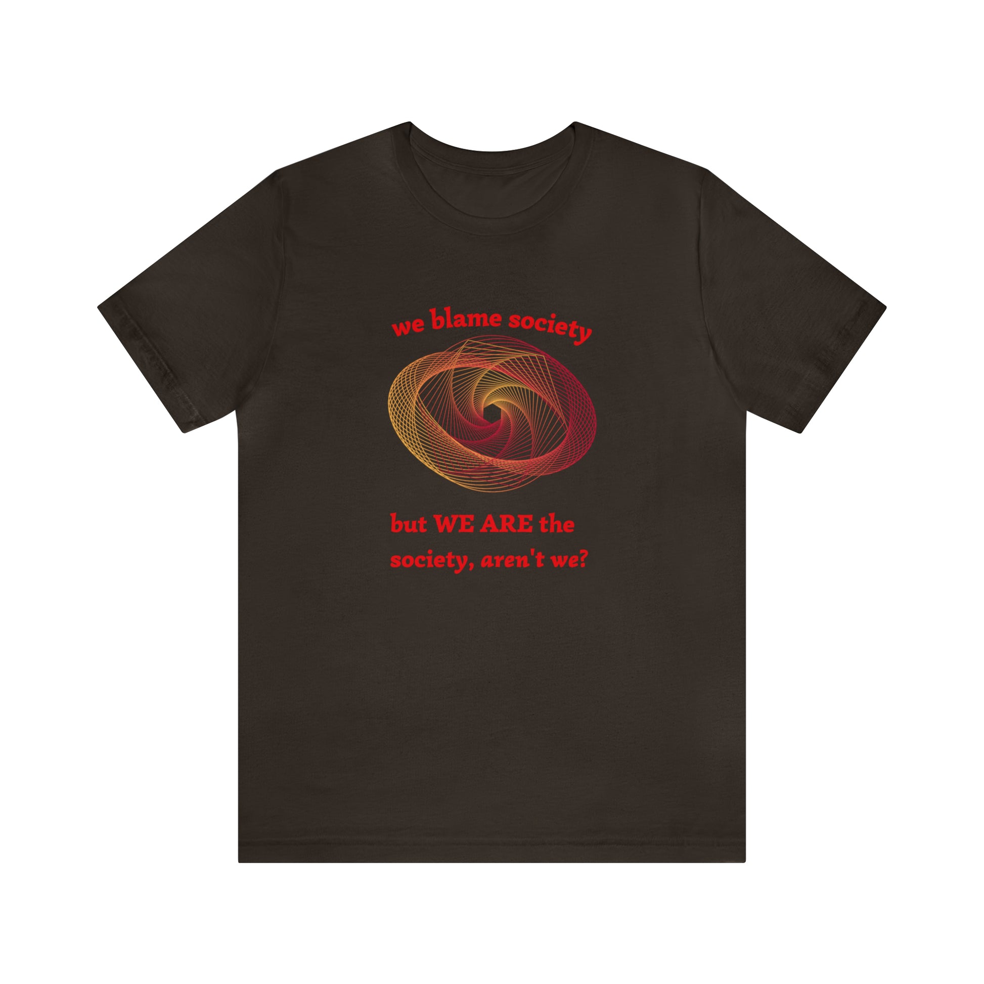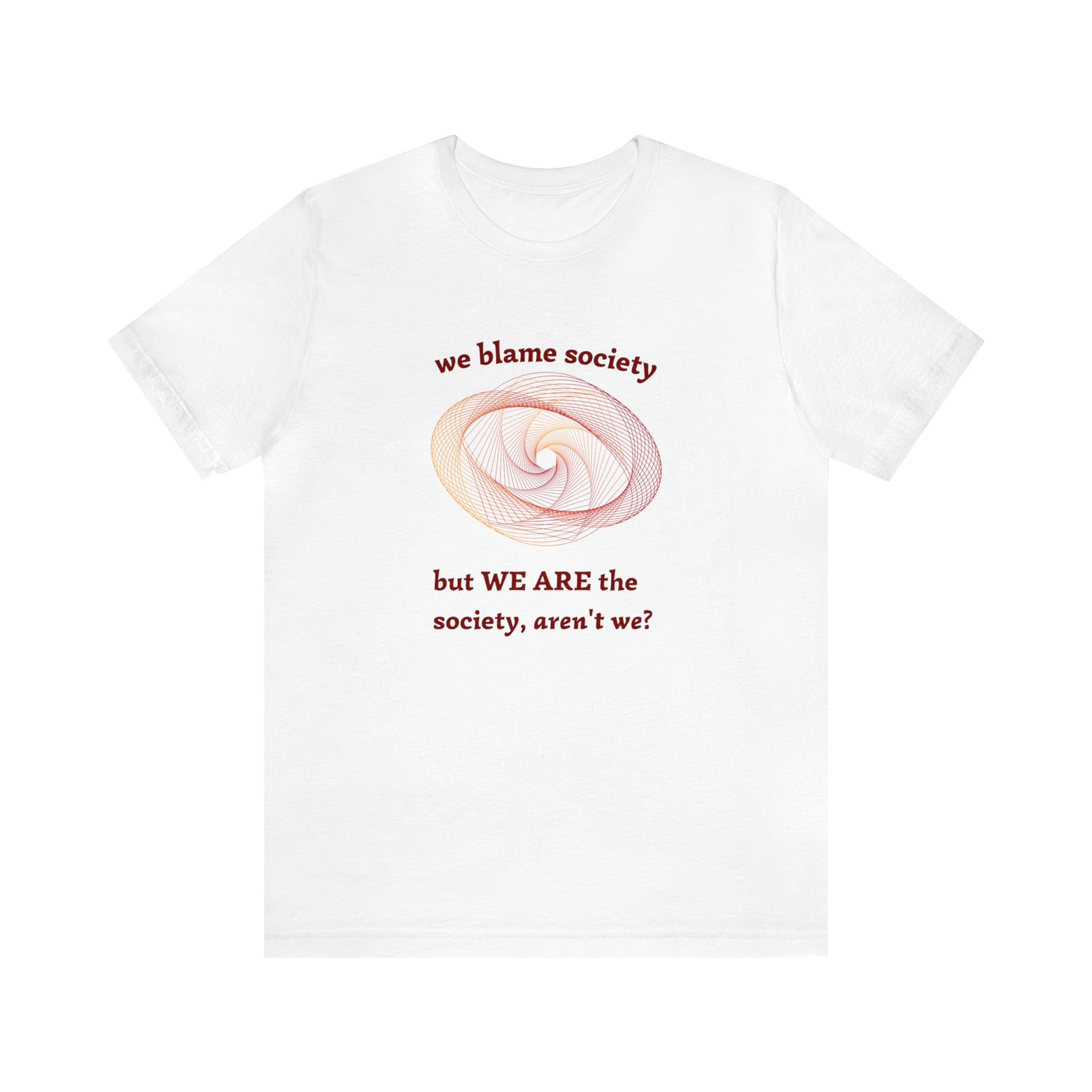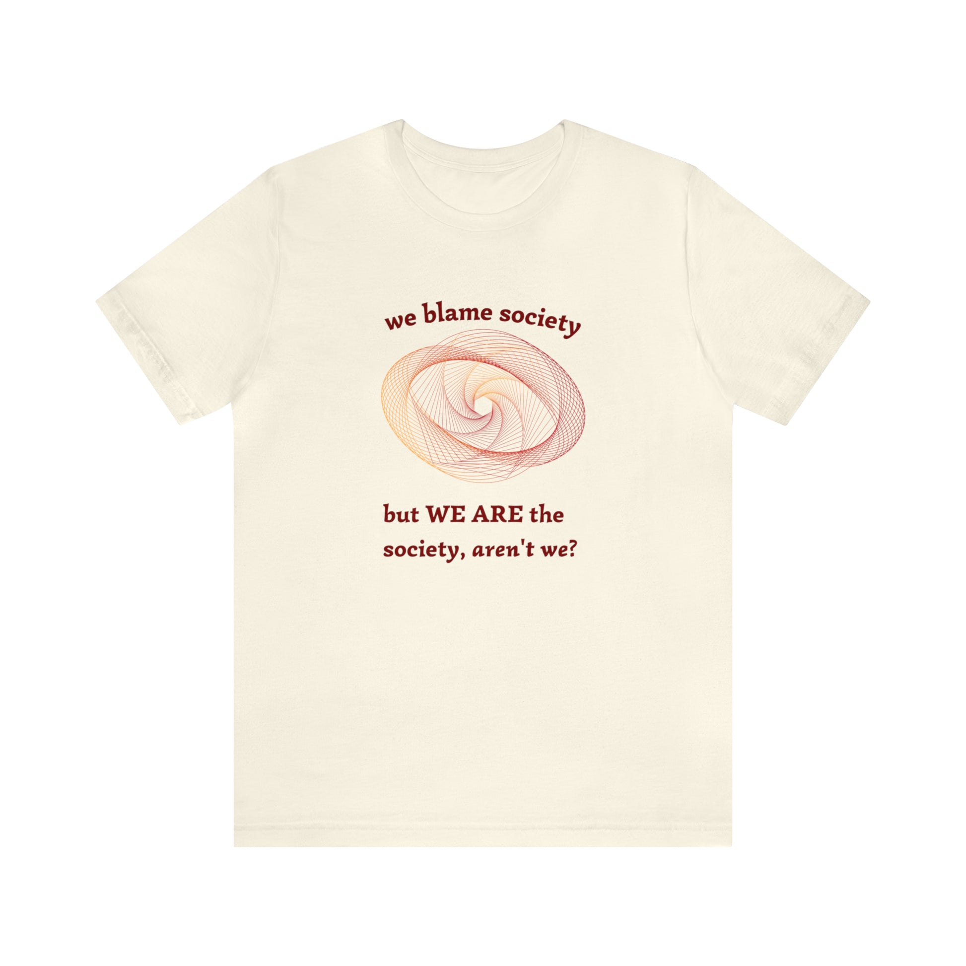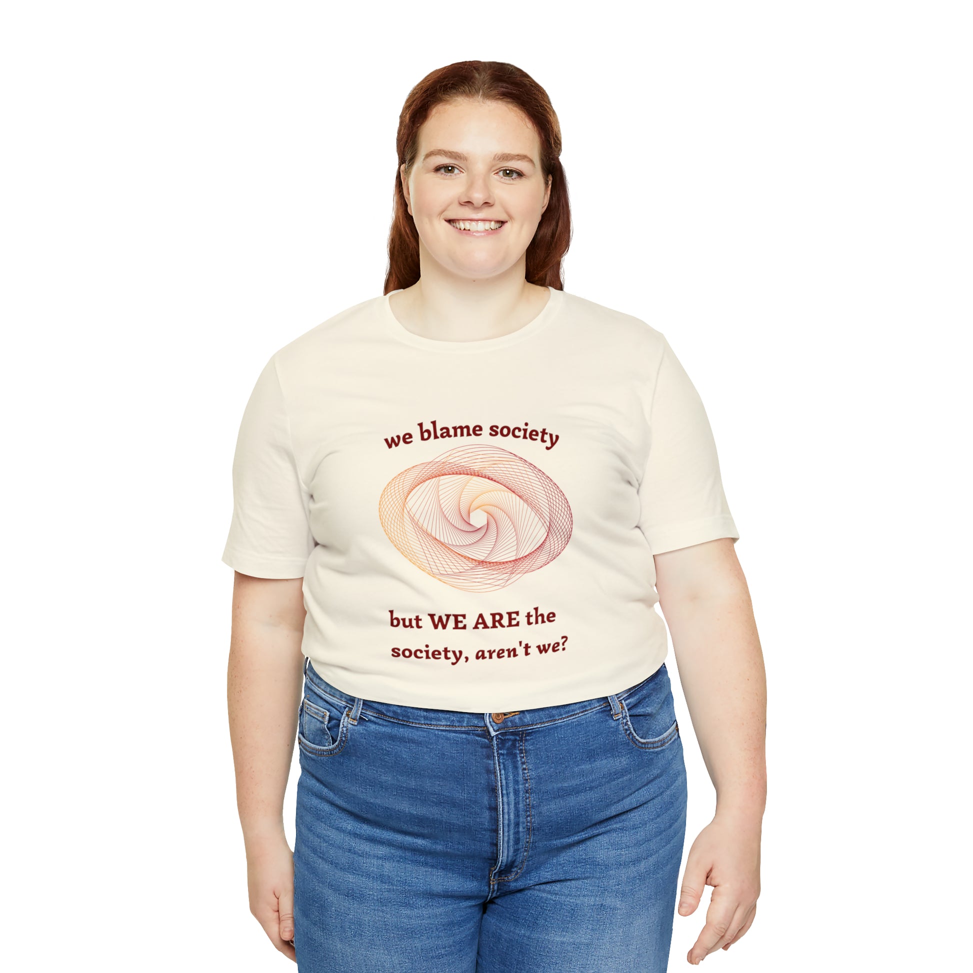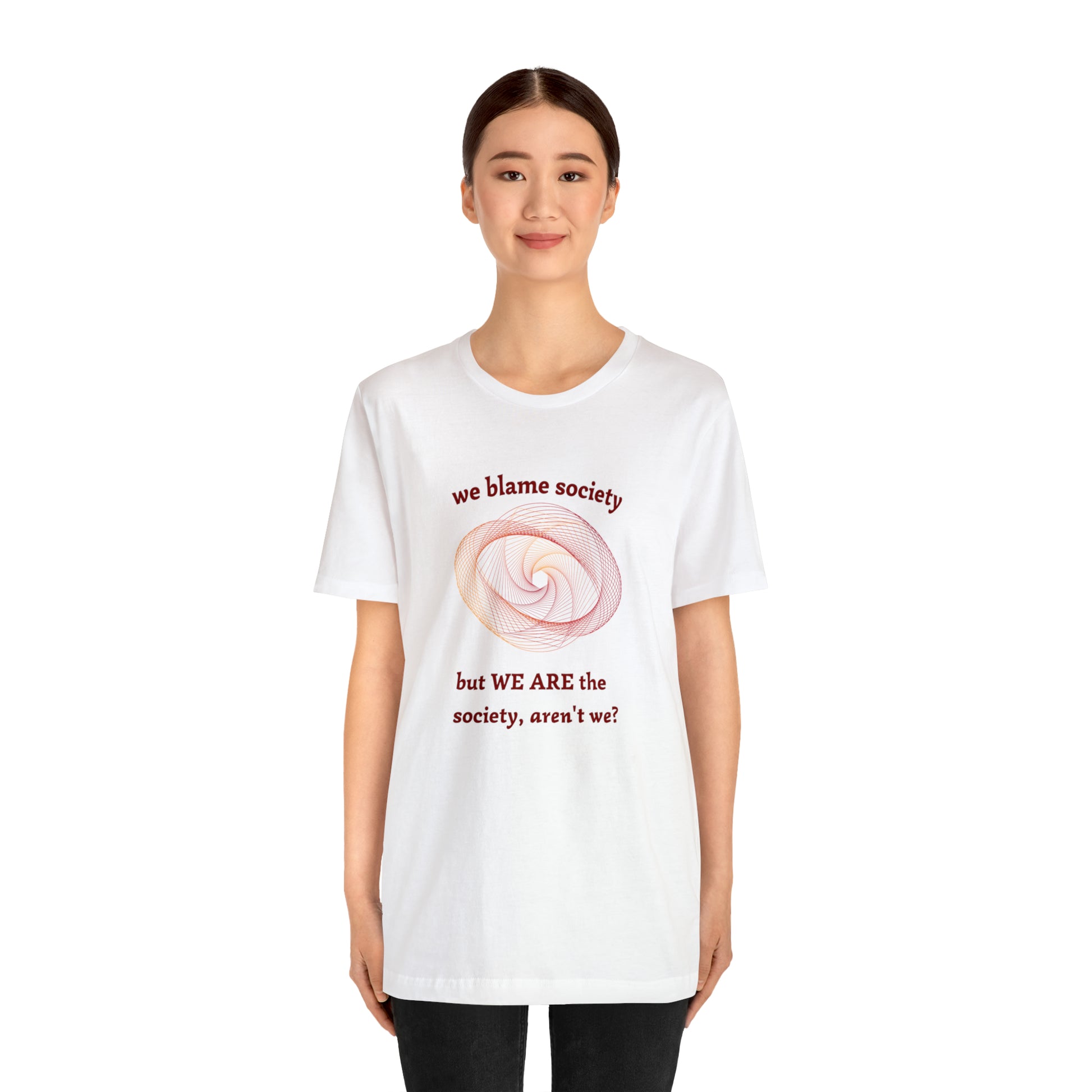 Challenge societal norms with our "We Blame Society But We Are The Society Aren't We" Statement T-Shirt! Whether you're advocating or simply reminding others of the power they hold to influence change, this tee serves as a symbol of your dedication to a more conscious and empowered society. Wear this shirt with pride and let the world know that you believe in the strength of collective action and individual choices.